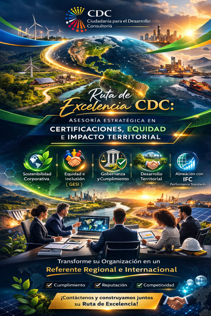 En Ciudadanía para el Desarrollo Consultoría, no nos limitamos a preparar organizaciones para auditorías: diseñamos rutas de fortalecimiento institucional, cumplimiento estratégico, sostenibilidad aplicada y posicionamiento territorial, con una visión adaptada a las realidades de América Latina y a las exigencias de sectores de alto impacto como minería, energía e infraestructura.